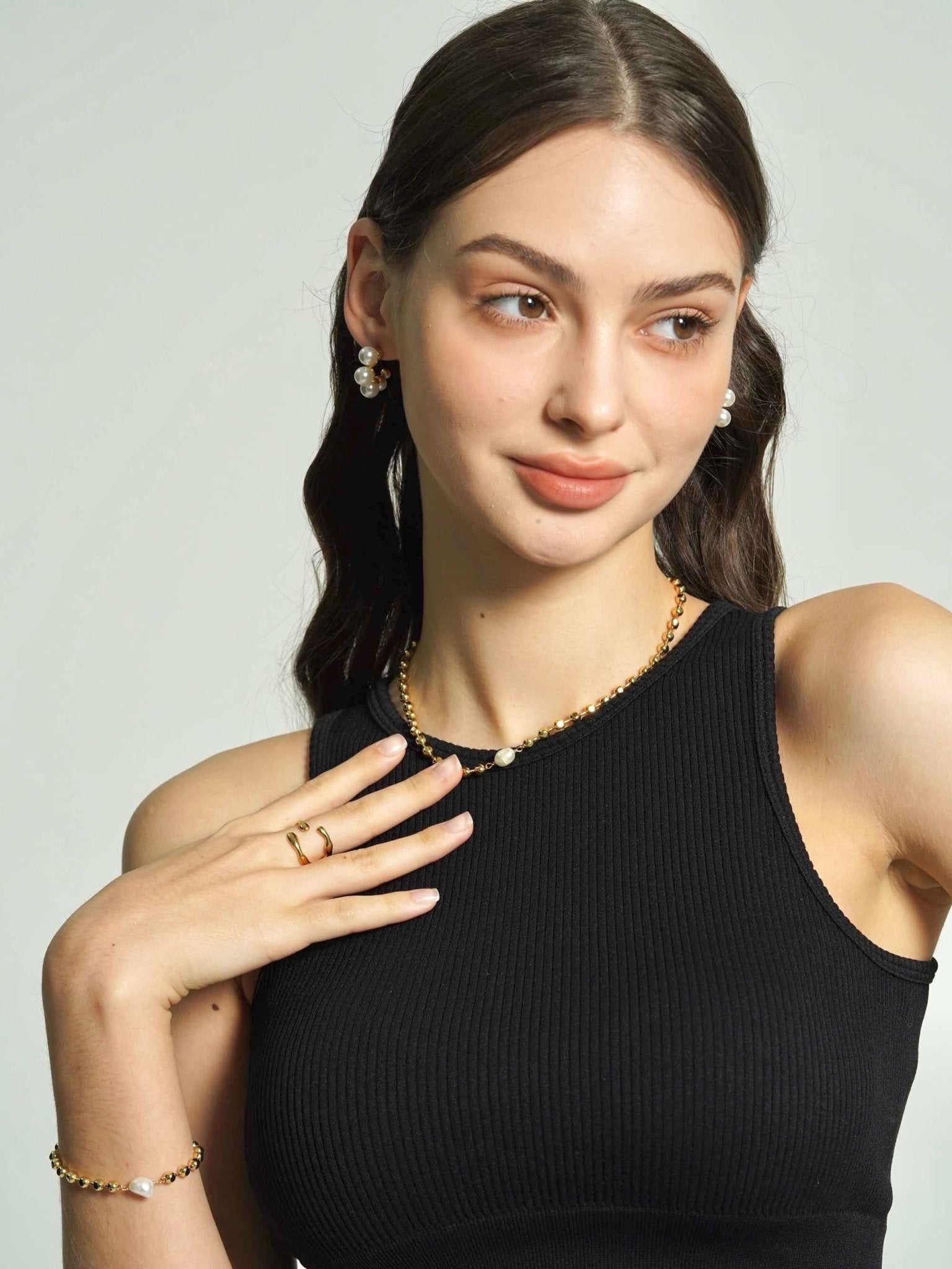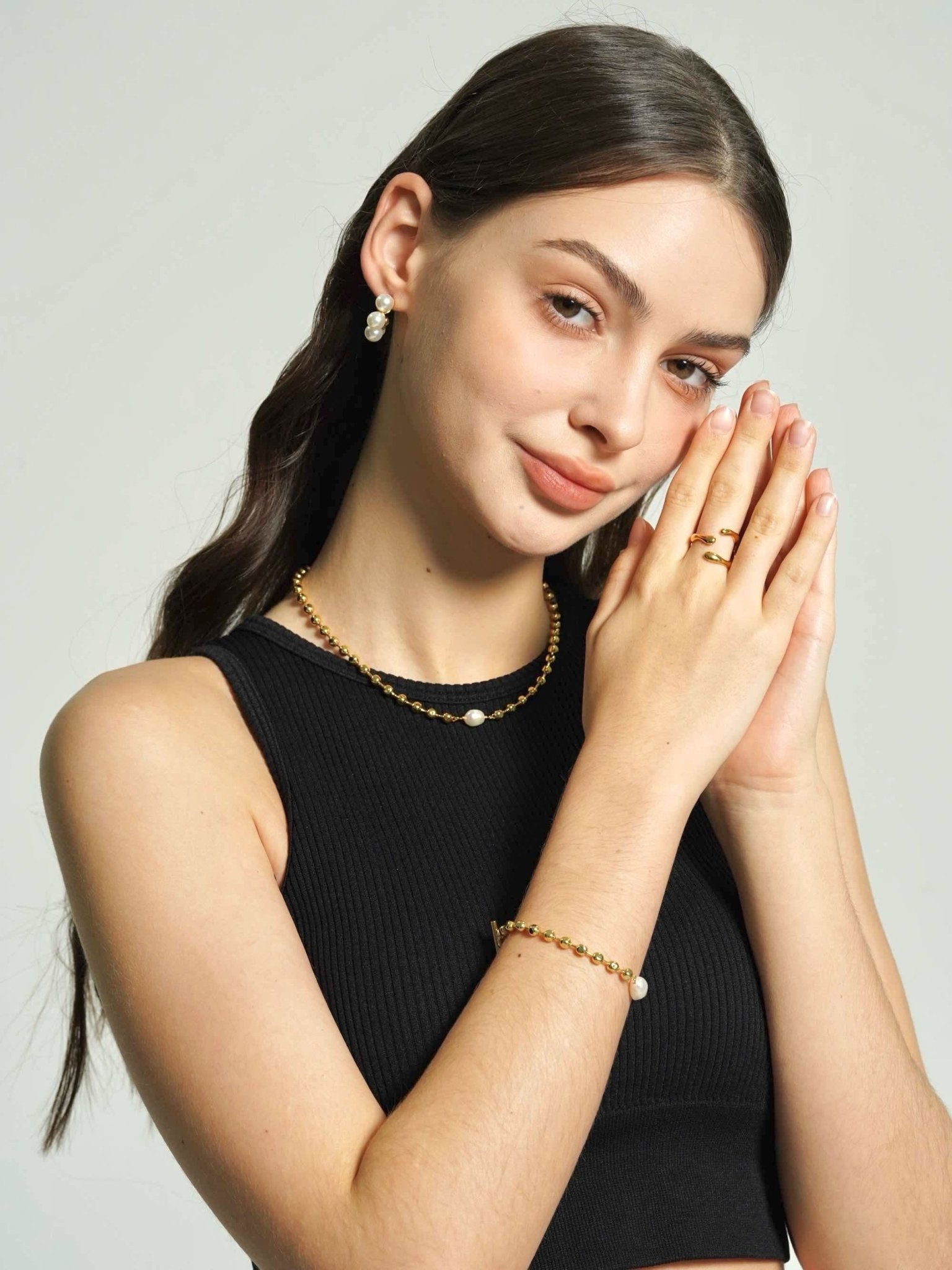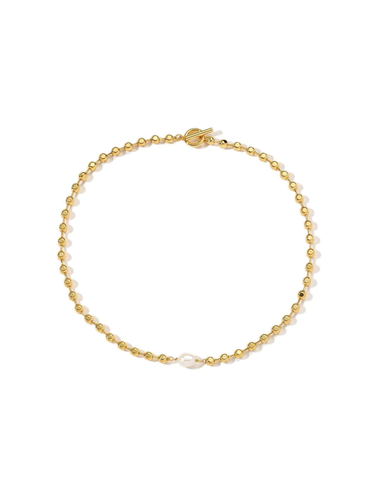 Add a touch of understated elegance to your collection with this handmade 18k gold-filled necklace, featuring a series of delicate beads punctuated by a lustrous pearl. Ideal for layering or as a solo statement piece.