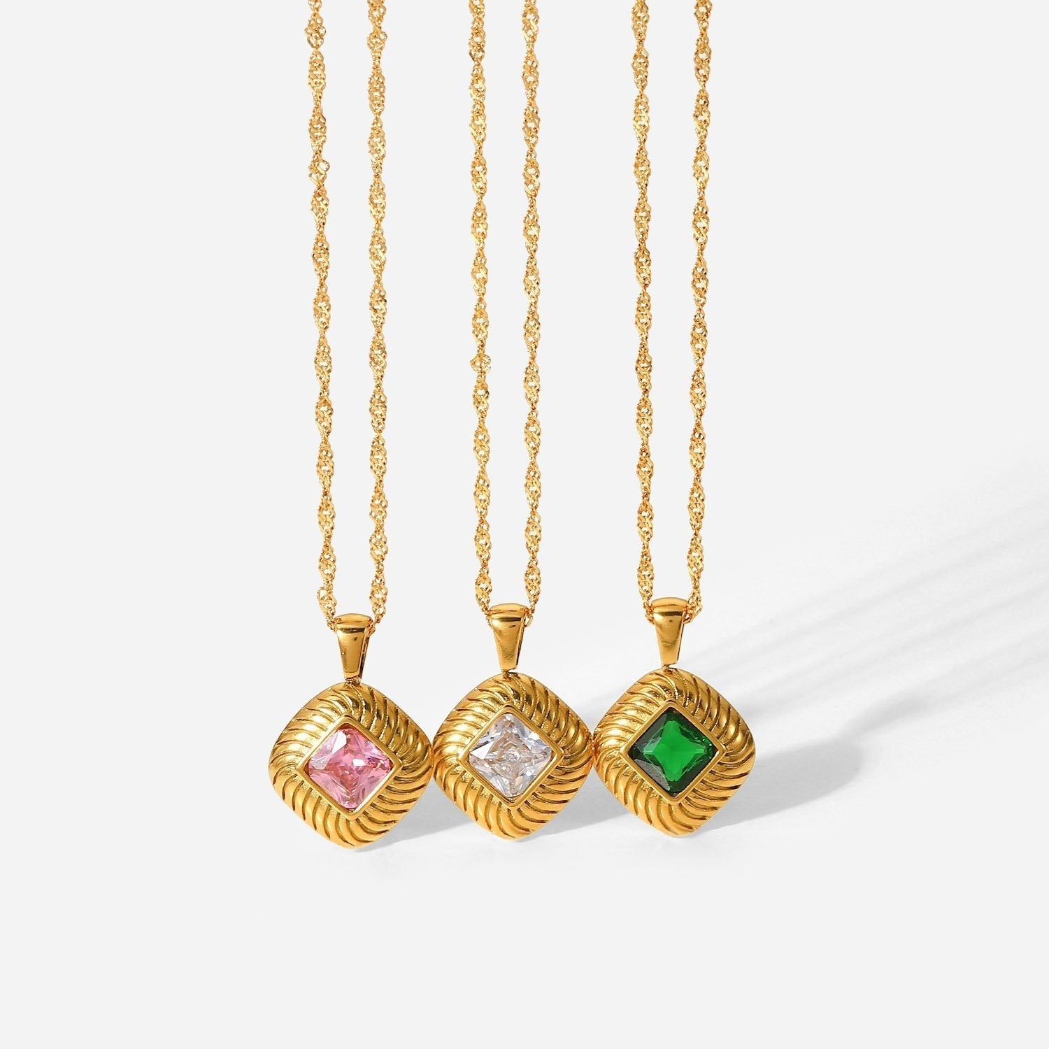 The Cubic Zirconia Necklace features stunning zirconia crystals on an 18k gold-filled chain, offering brilliance and elegance. Its dazzling design is perfect for those who seek sophisticated sparkle in their accessories.
