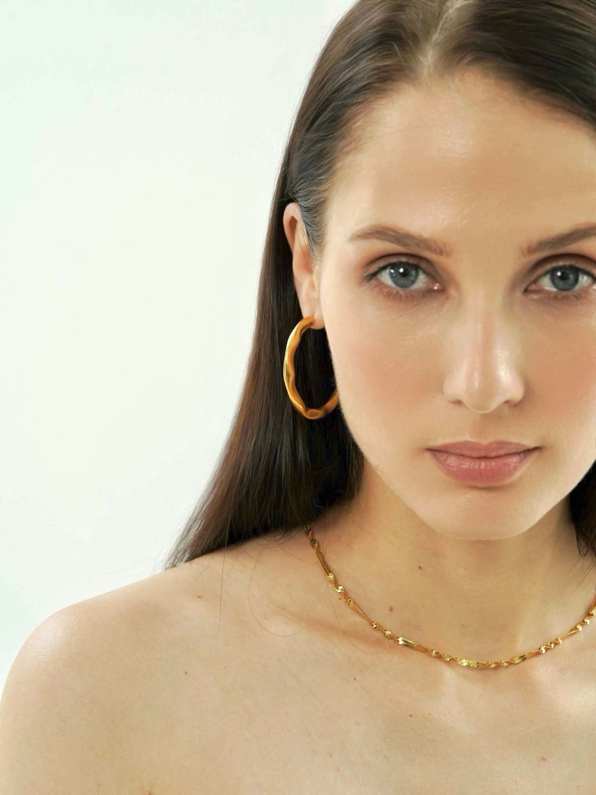 Explore the timeless allure of our Herringbone Necklace, a versatile gold chain piece that elegantly graces the neck. This luxurious herringbone choker, with its sleek snake chain design, is perfect for layering or wearing solo.