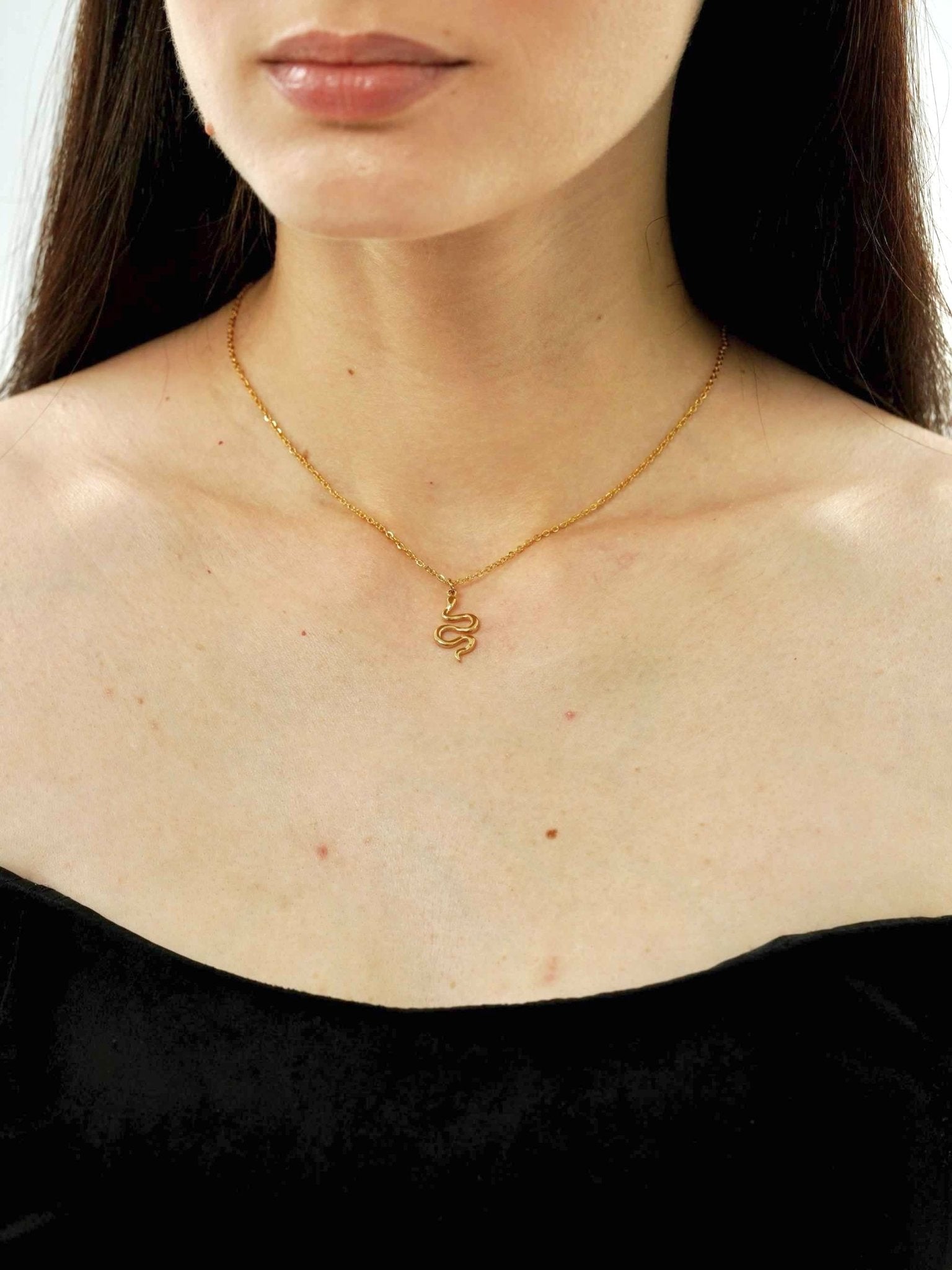 Step into elegance with our Dainty Snake Charm Chain Necklace. Designed in lustrous gold, this piece showcases a finely detailed snake pendant, embodying grace and allure. Perfect for those who appreciate the serenity and power of the serpent.