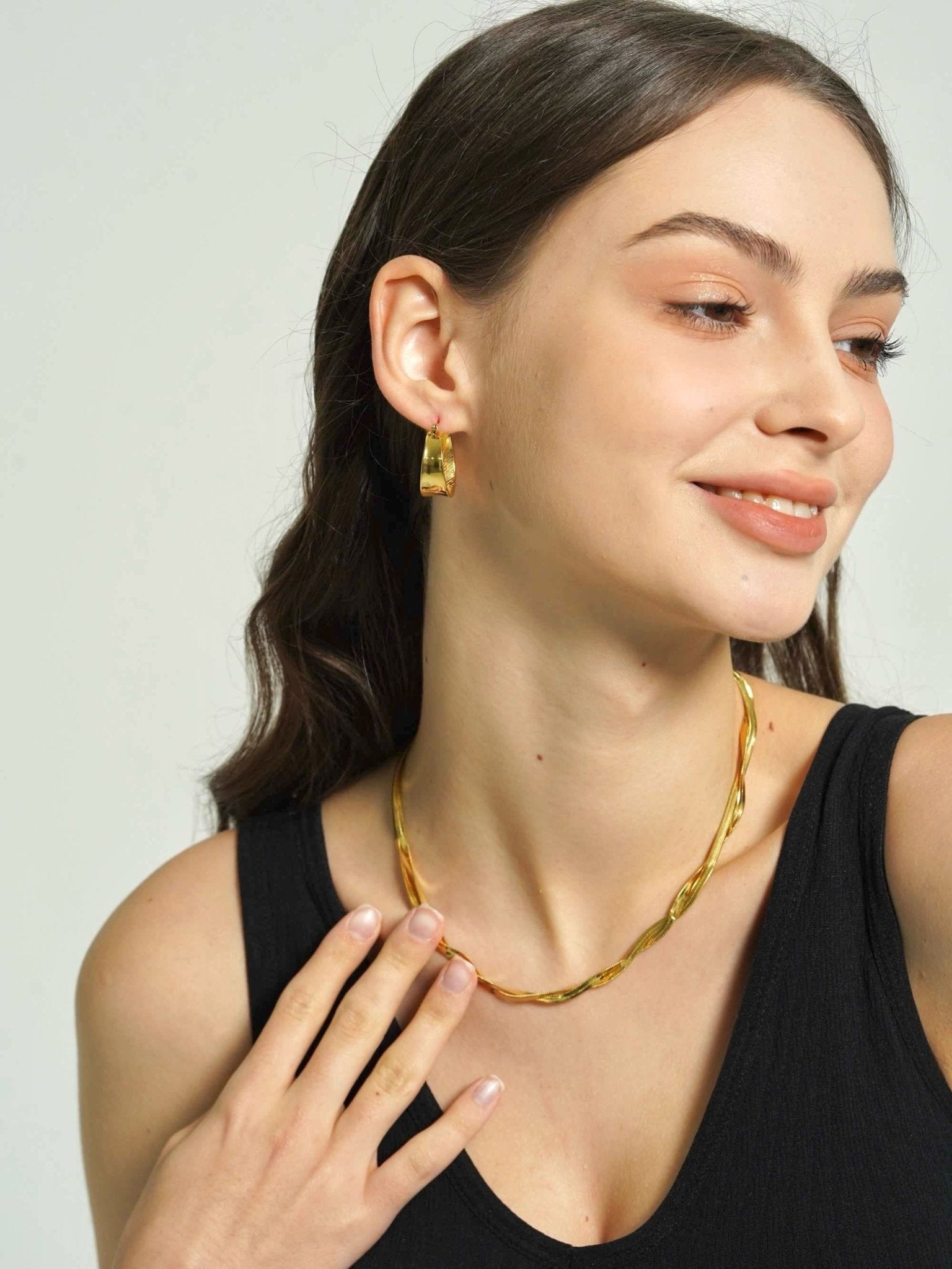 Gift this Gold Snake Chain Necklace Set to her or yourself! This is for the minimalist who wants to make a statement. This gold herringbone choker necklace can be paired with just anything for an effortless look.