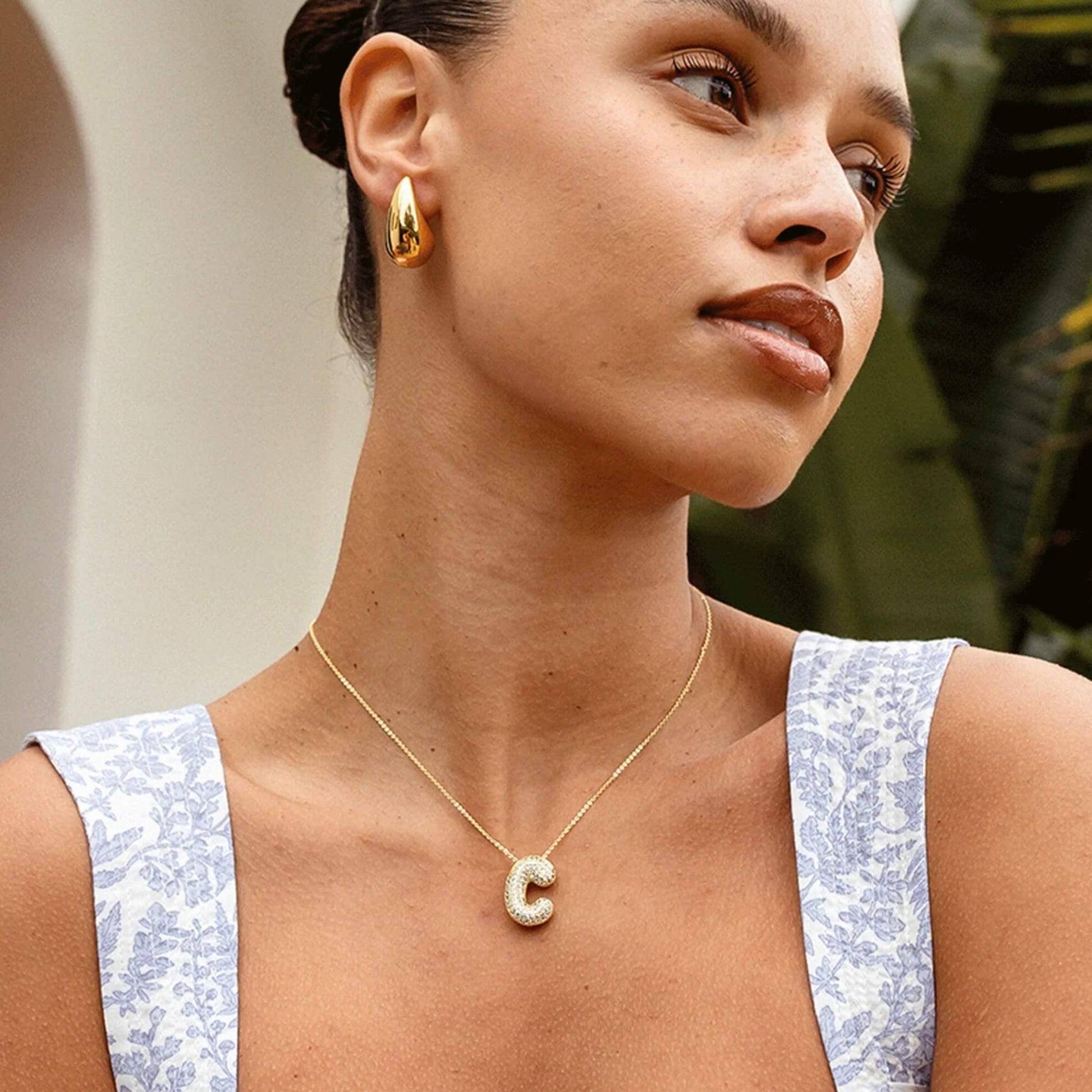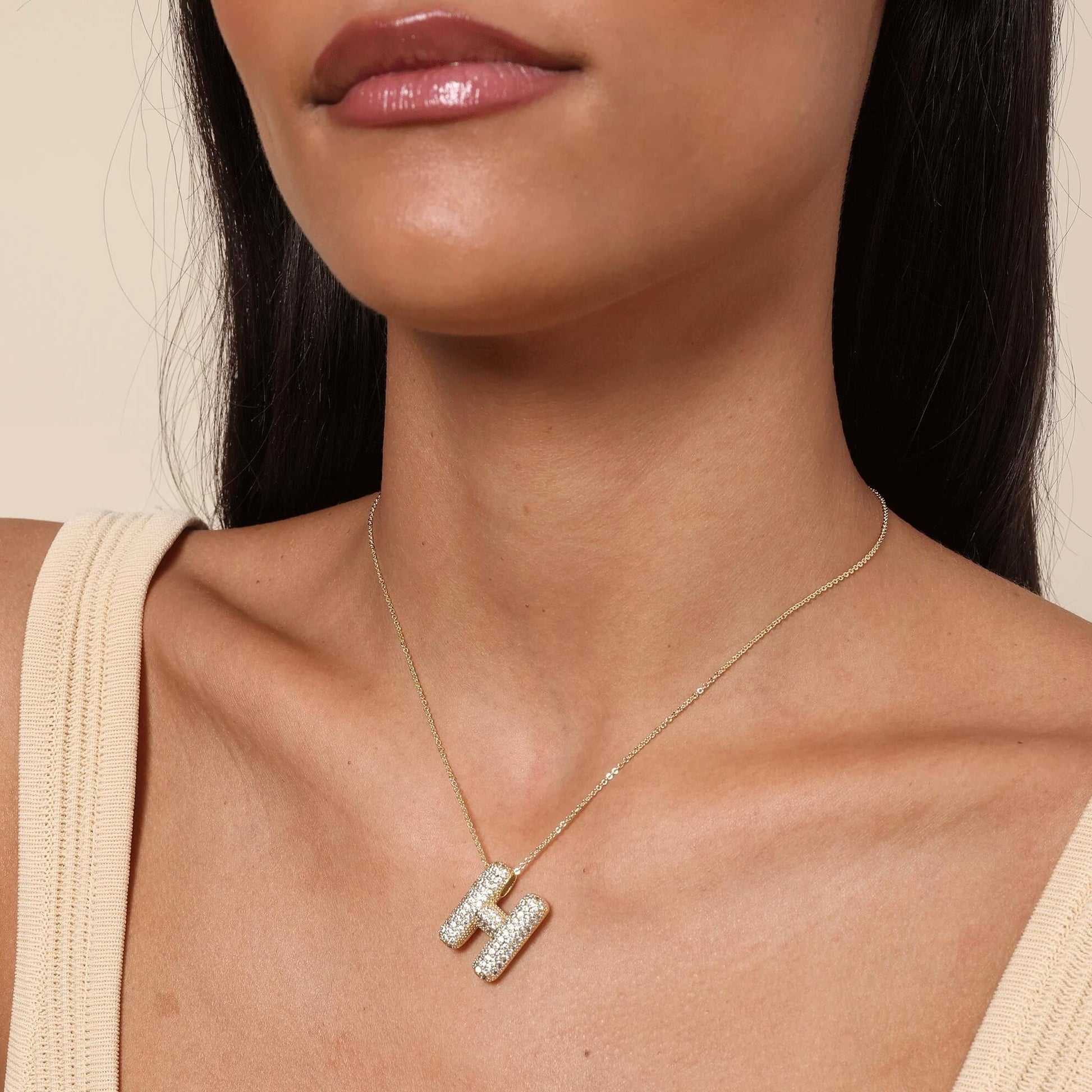 Playful, bold, and oh-so-sparkly. The Moissanite Bubble Letter Necklace in 18k gold vermeil adds a fun twist to personal jewelry. Featuring a rounded, bubble-inspired design paired with dazzling moissanite, it’s made to stand out. Wear it solo or layer it up—your initials never looked so good.