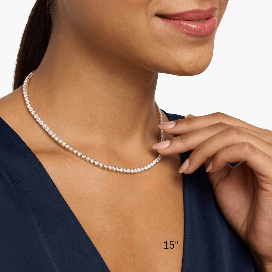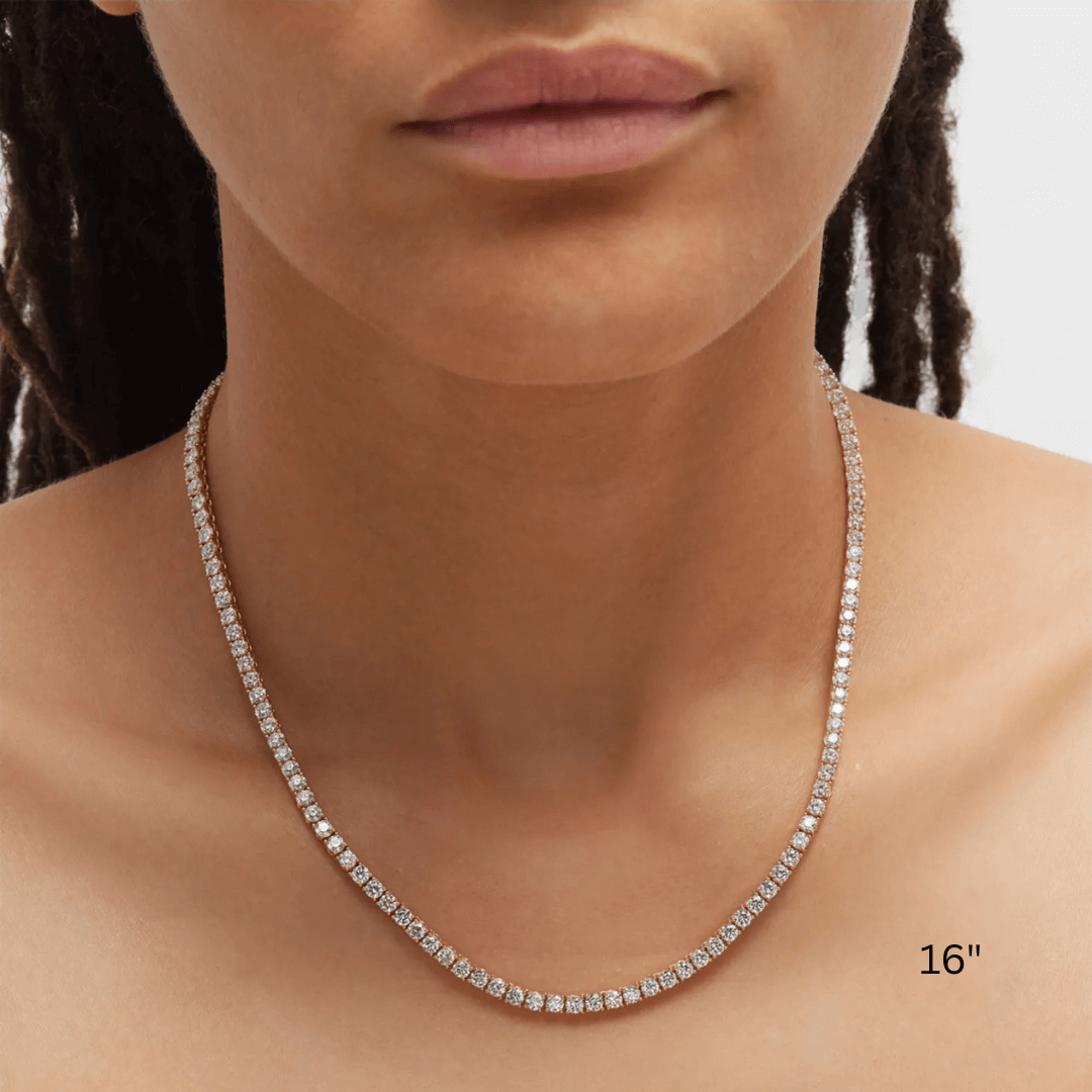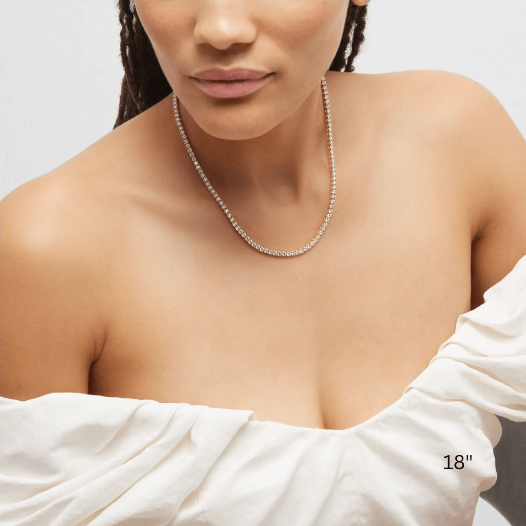 4mm moissanite stones set in 18k gold vermeil offer a look that feels both modern and timeless. Whether dressed up or down, this tennis necklace brings the sparkle you deserve.