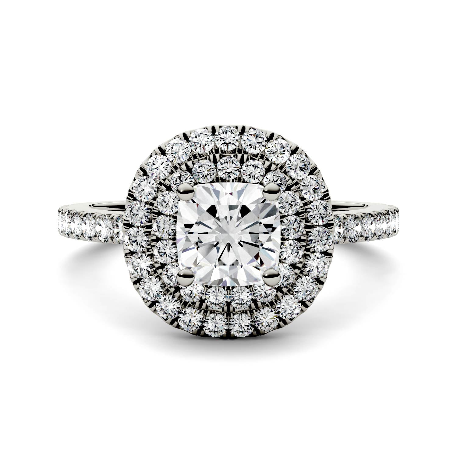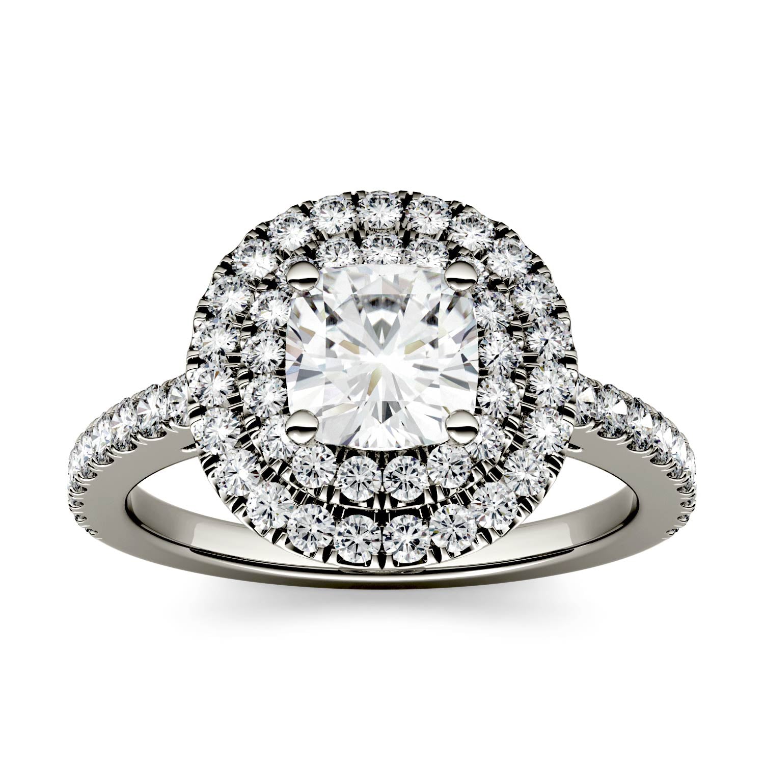 Nothing promises forever quite like a halo. This 1.77 CTW cushion cut halo engagement ring in 14K white gold will leave her stunned!