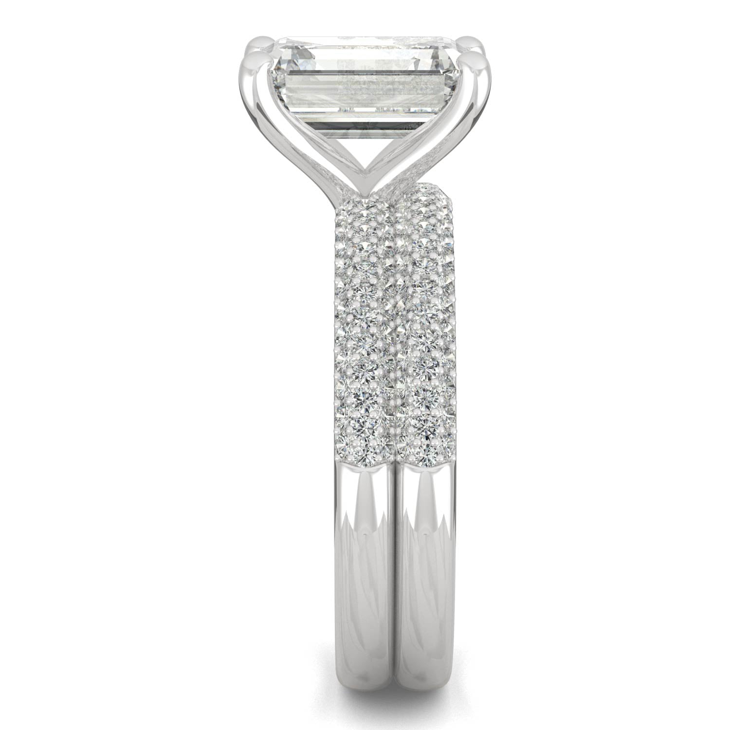 2.96 CTW DEW Emerald Moissanite Side-Stone Bridal Set in 14K White Gold