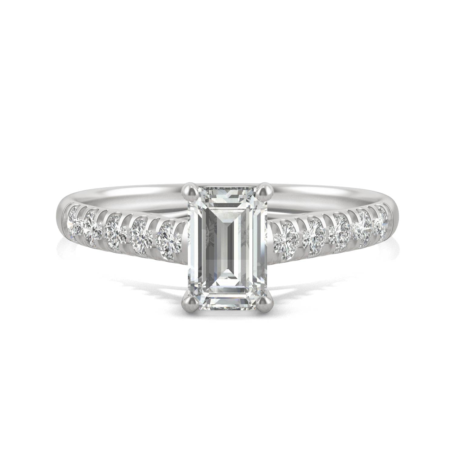 1.24 CTW DEW Emerald Moissanite Side-Stone Engagement Ring in 14K White Gold