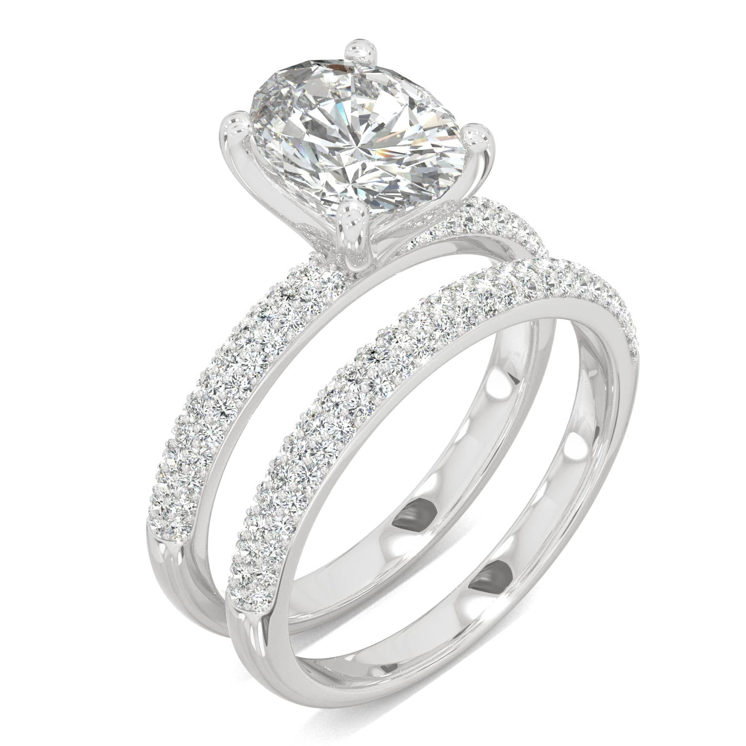 2.54 CTW DEW Oval Moissanite Side-Stone Bridal Set in 14K White Gold