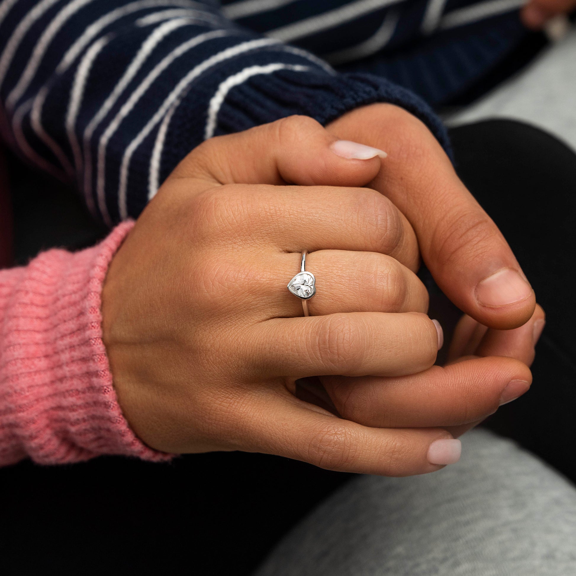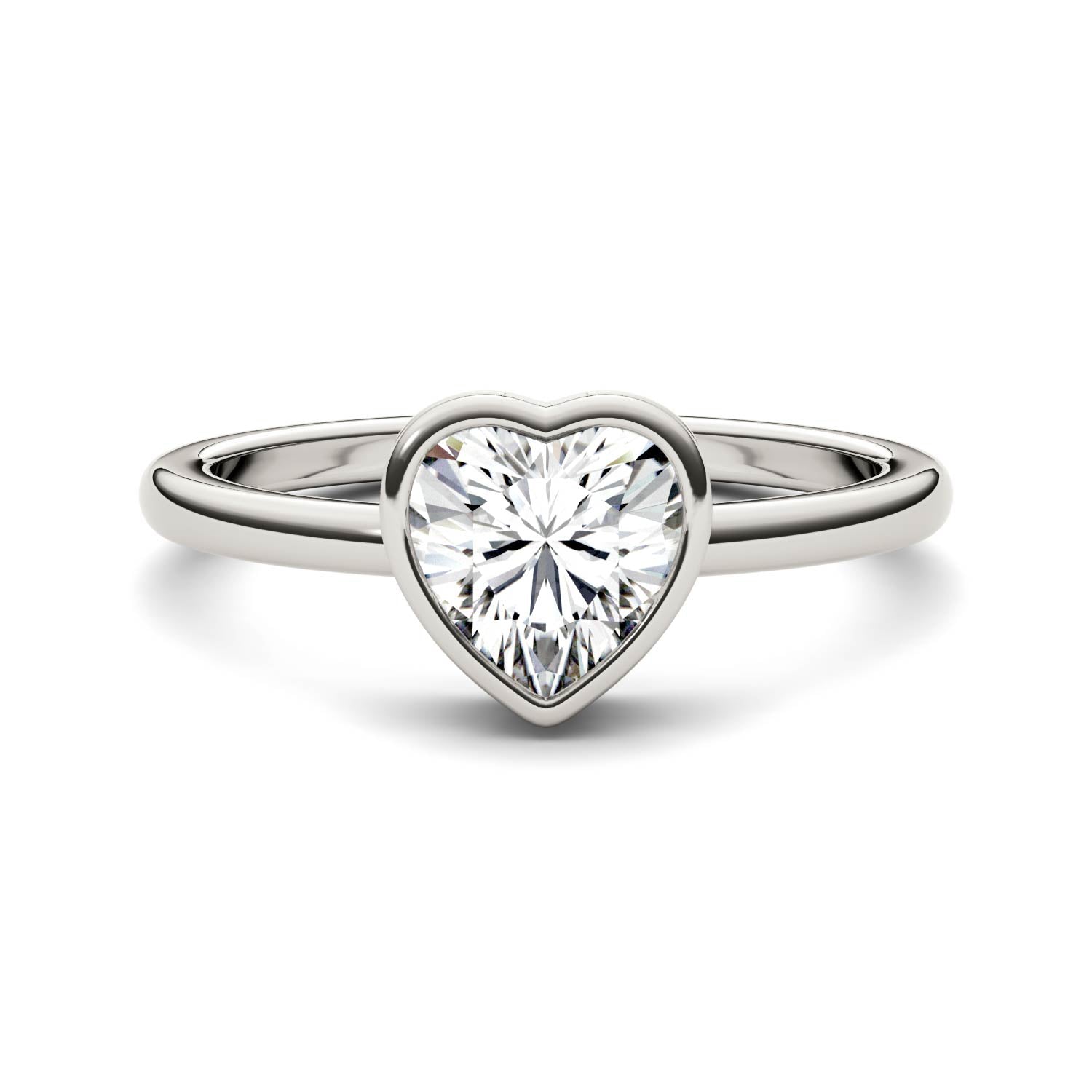 1.00 CTW DEW Heart Moissanite Bezel Solitaire Engagement Ring in 14K White Gold