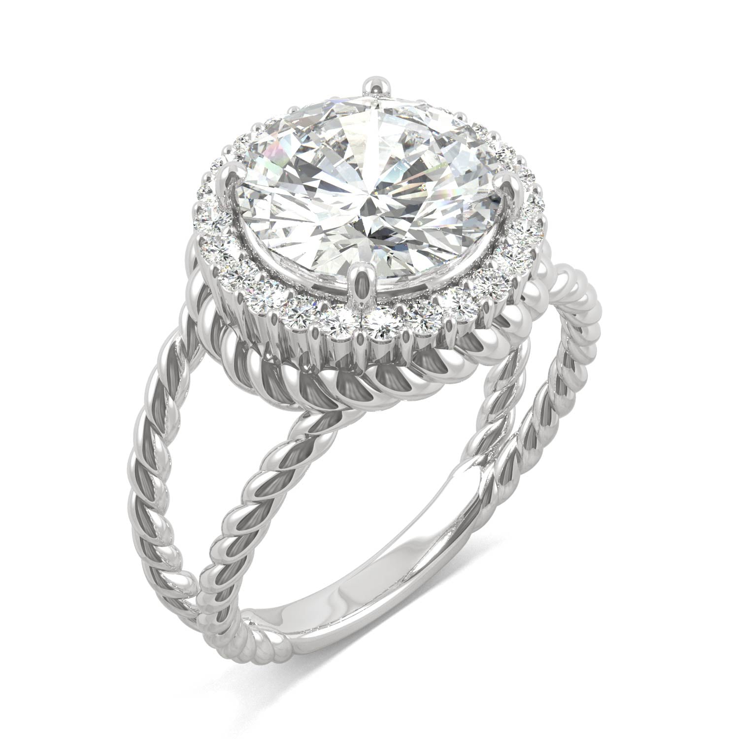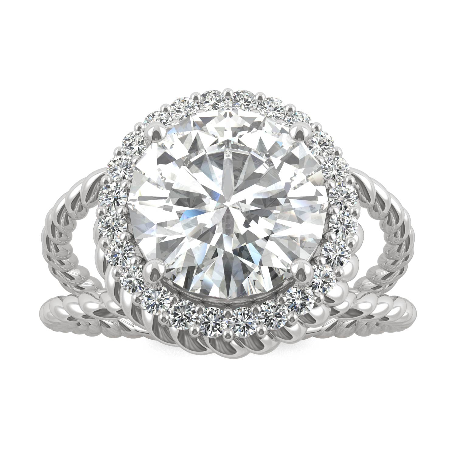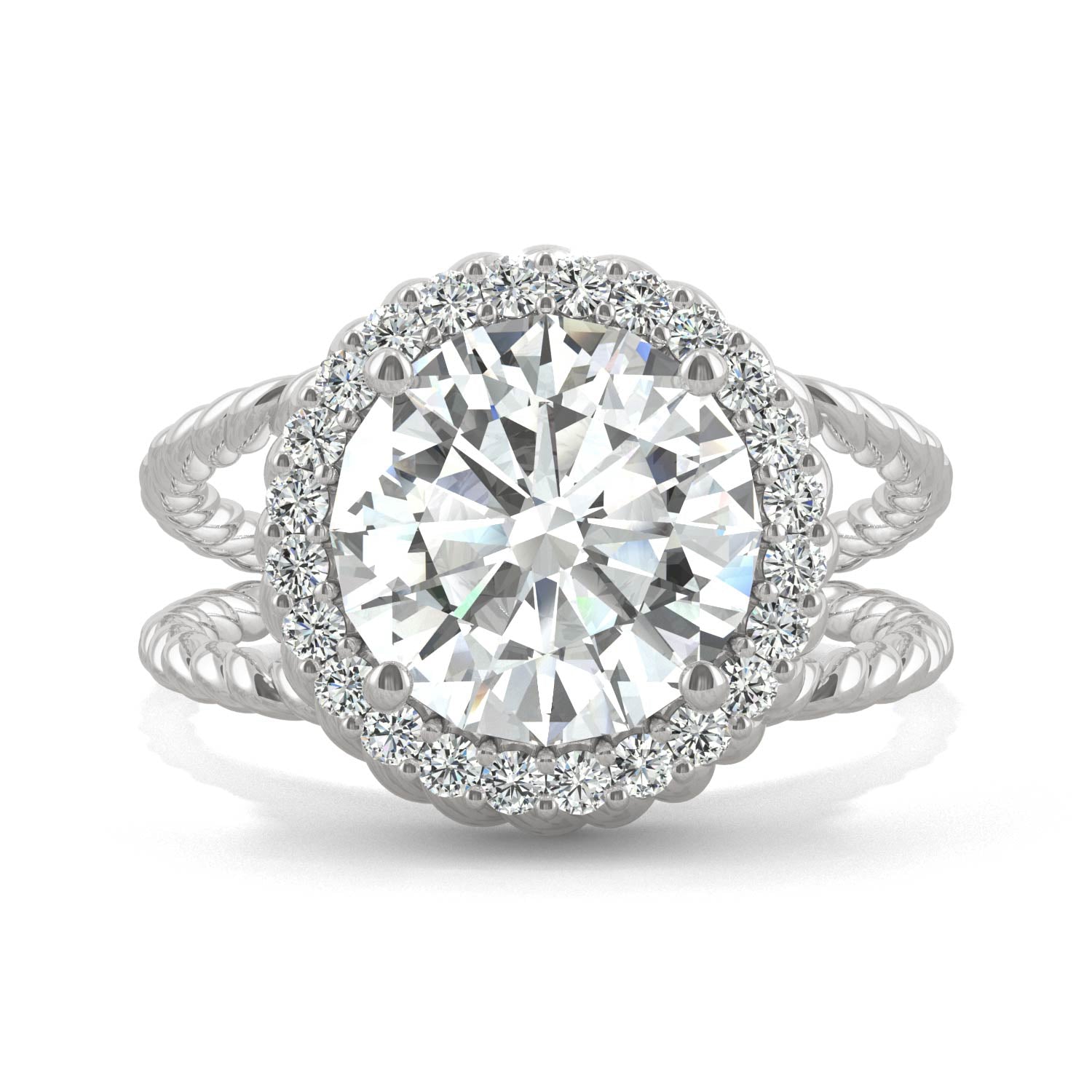 2.94 CTW DEW Round Moissanite Halo Split-Shank Engagement Ring in 14K White Gold