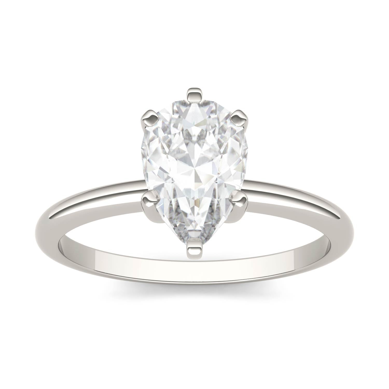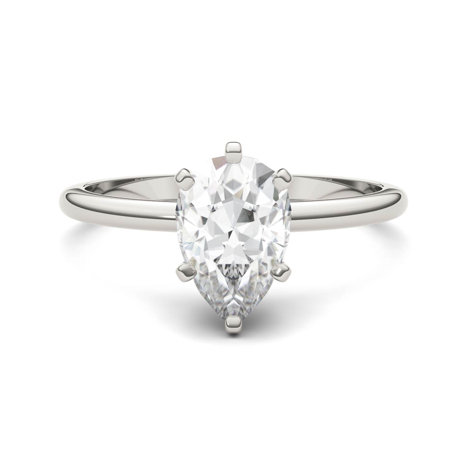 Seal your commitment with a classic solitaire engagement ring. This brilliant pear cut moissanite is nestled in a six prong setting, 14k white gold band. With a 1.50ct total diamond equivalent weight, it packs a powerful shine to reflect your love.
