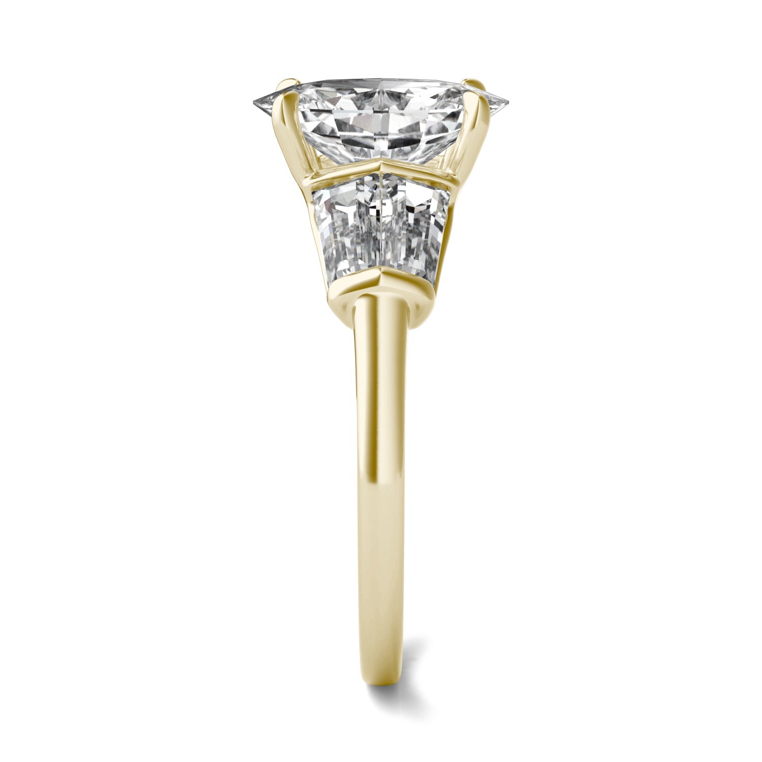 Bold and Geometric, this engagement ring, with double baguette accents, was made for the lady who wants to stand out! The yellow gold band accentuates the bling while maintaining a dainty and artistic feel.