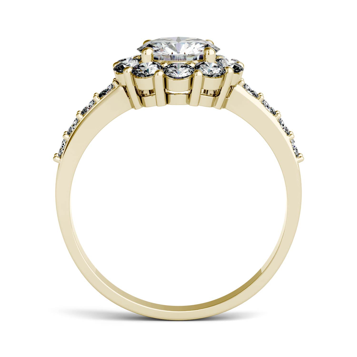 1.78 CTW DEW Round Moissanite Halo Ring in 14K Yellow Gold