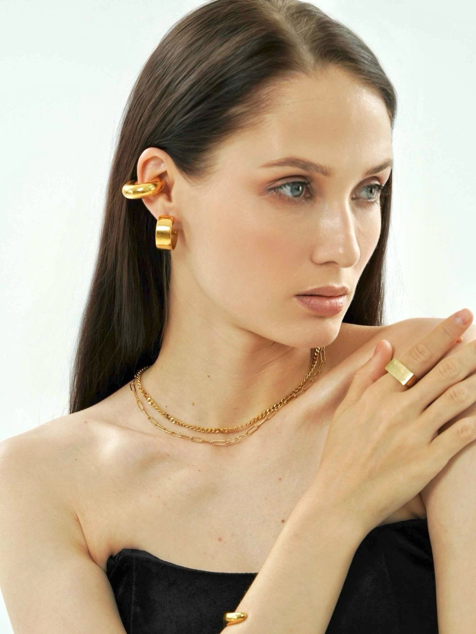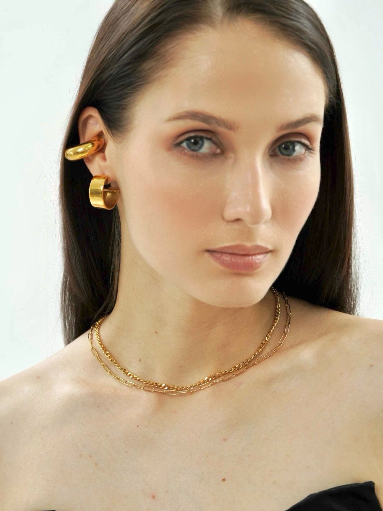 Elevate your style with our Layered Necklace Set, meticulously crafted to intertwine sophistication with modernity. The set showcases a trendy paperclip design, blended with the classic charm of a thin chain necklace, all draped in radiant gold.