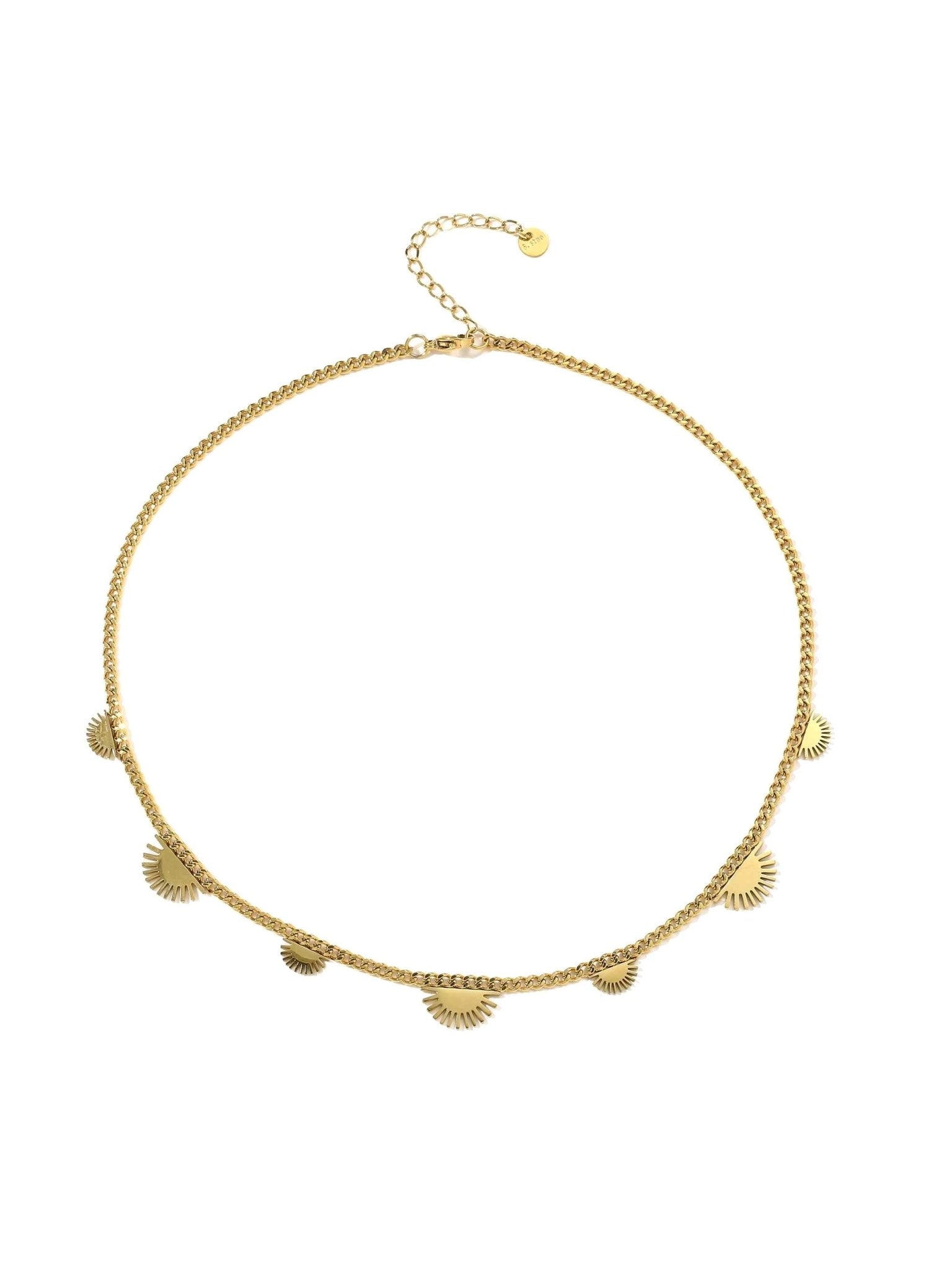 Capture the warmth of the sun with this exquisite 18k gold-filled Sun Charm Choker Necklace. This celestial-themed piece is ideal for layering, adding a radiant touch to any ensemble.